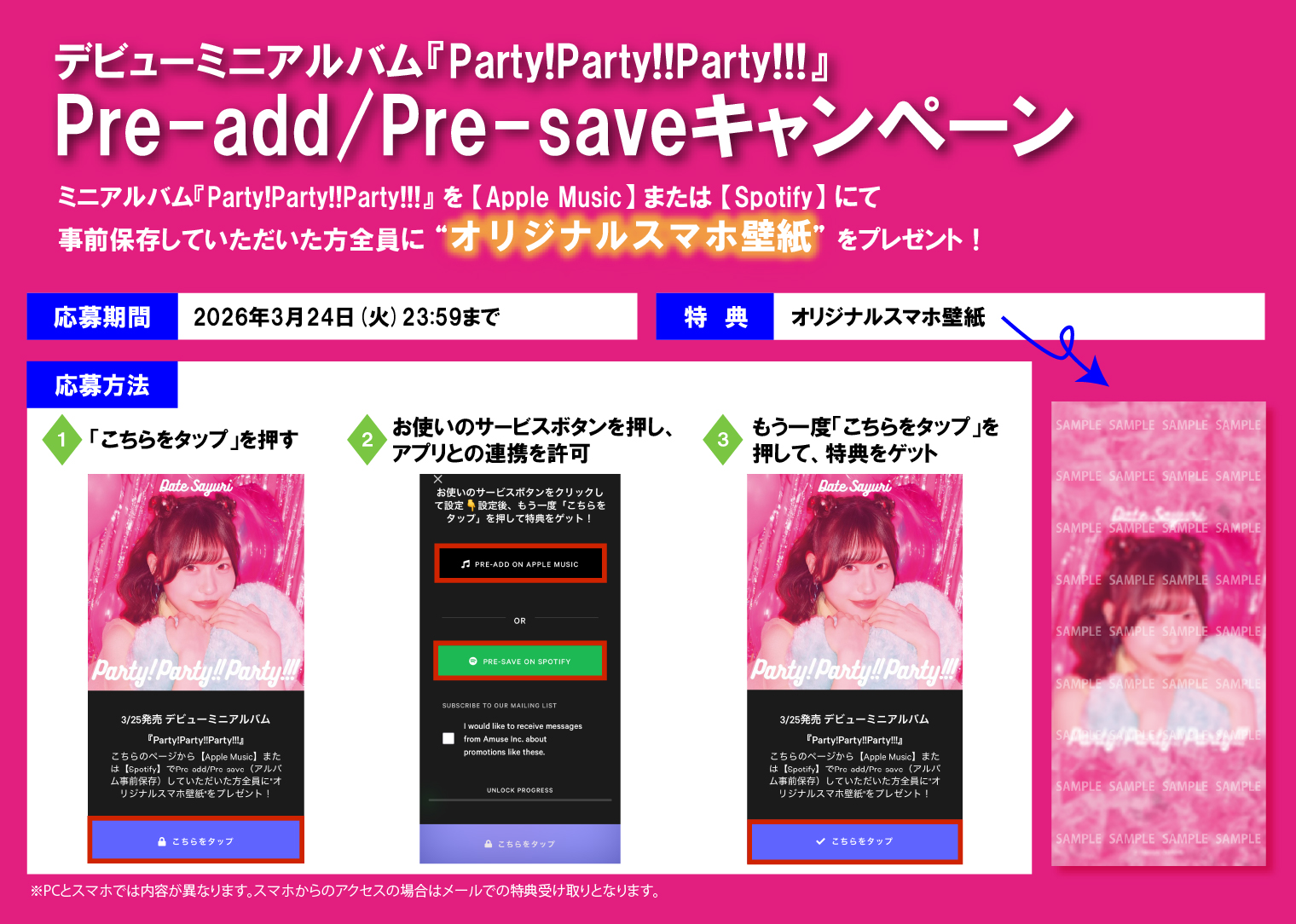 3月25日(水) 伊達さゆりミニアルバム『Party!Party!!Party!!!』のリリースを記念してデジタルキャンペーンの開催が決定!