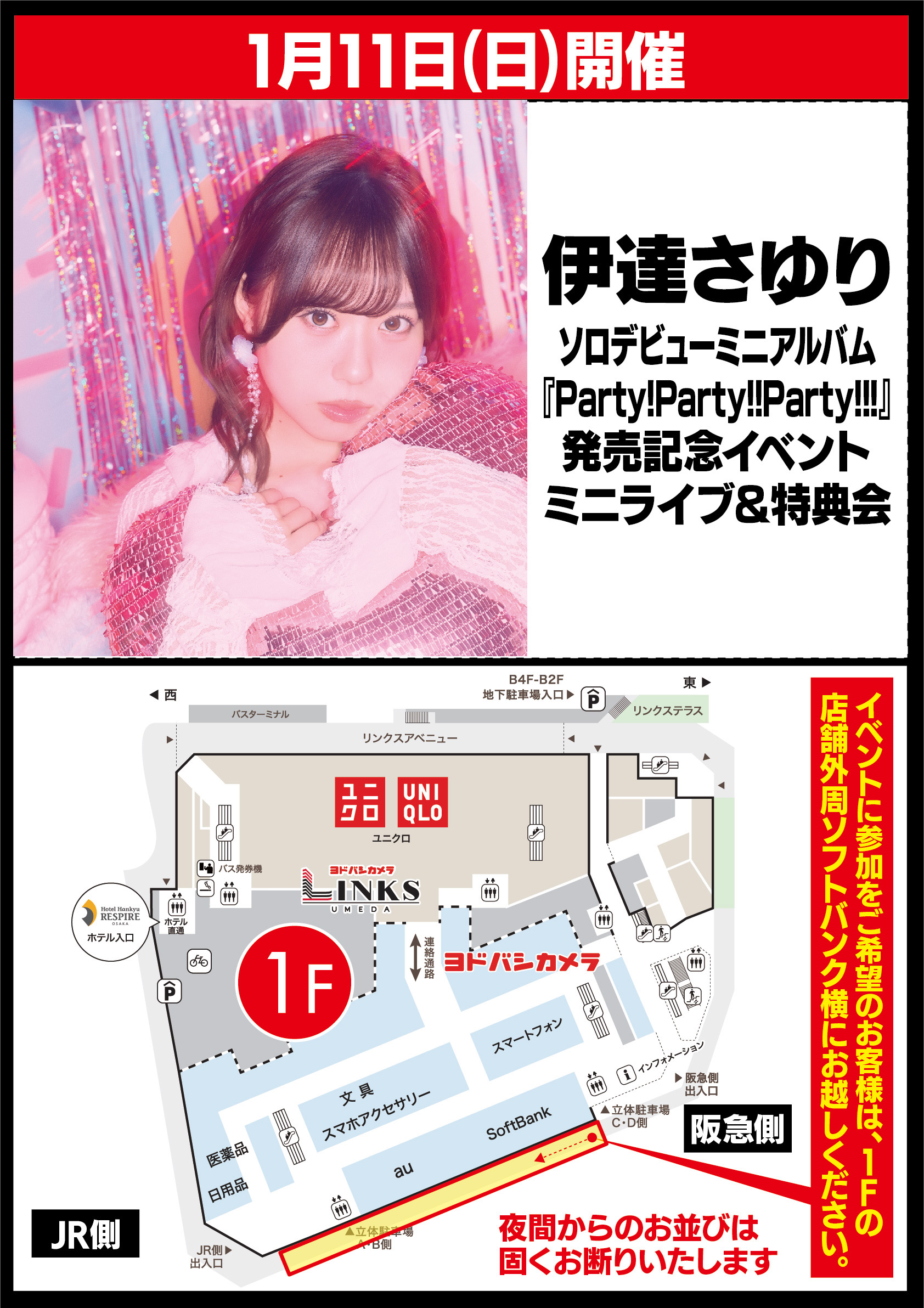 イベントスペースへはCDをご予約頂かなくてもご入場頂けます。 無料入場ご希望のお客様はイベント開始10分前に、1F 店舗外周ソフトバンク横までお越し下さい。